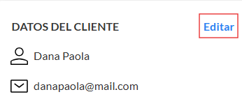 4. Si deseas cambiar alguna información del clientes, solo debes localizar el botón Editar, en la sección Datos del cliente.